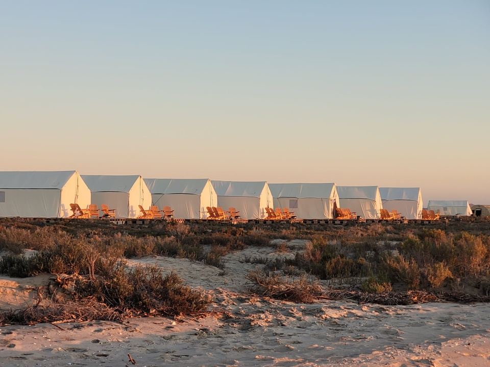 Or as long as the weather cooperates, enjoy kayaking or paddleboarding the mangroves across the lagoon or a leisurely walk, mountain biking, walk along the shore, and bird watching with one of our naturalists or just kicking back, and relaxing. Cocktail hour, sunset viewing, making new friends around one of our fire pits, a game of billiards and an evening presentation by a naturalist are all fine ways to finish off your day in camp.